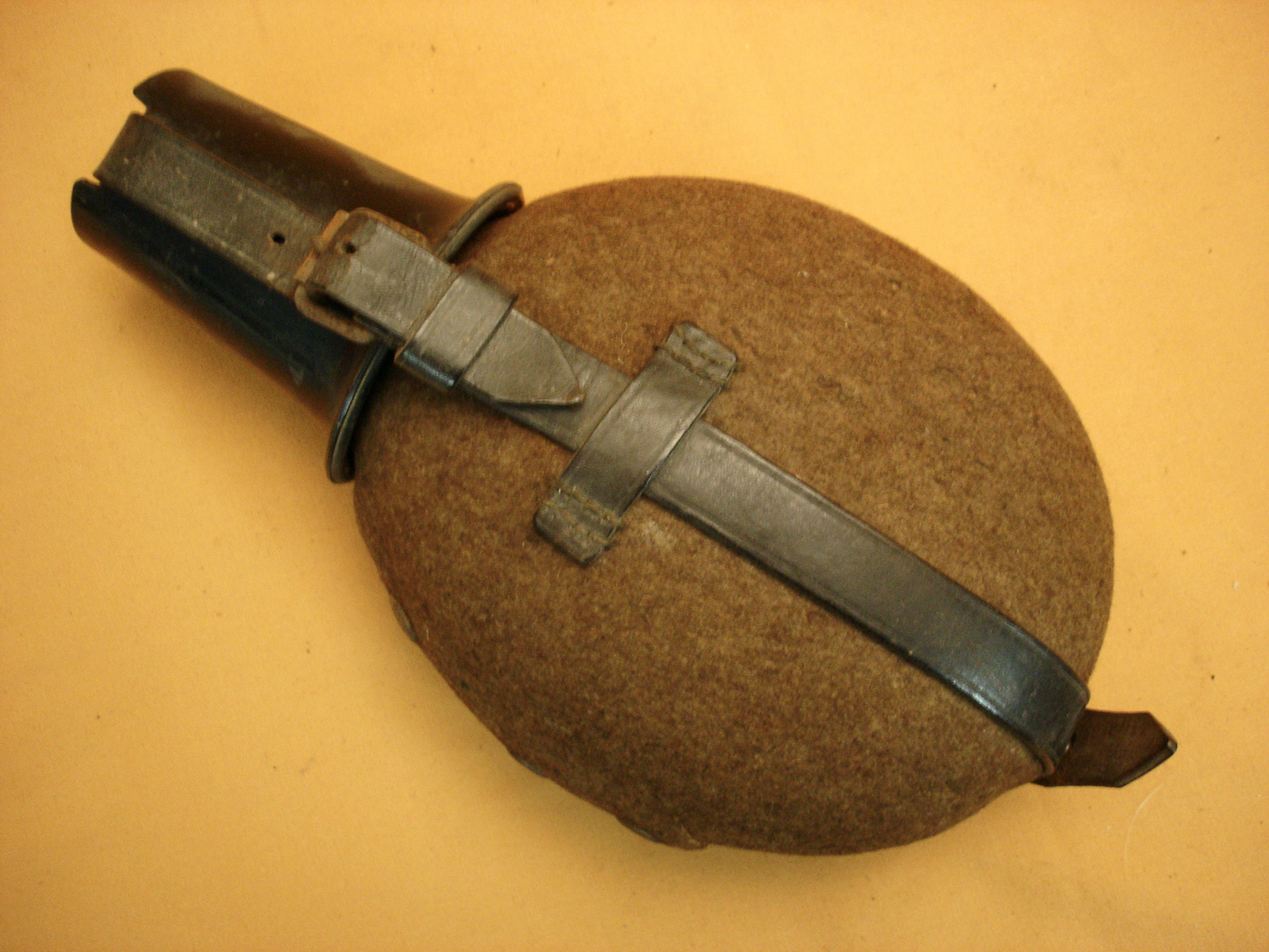 Gourde Wehrmacht avec quart bakélite, mousqueton marqué RZM, housse en très bon état, dans son "jus". Prix : 120,00 port compris pour la France.