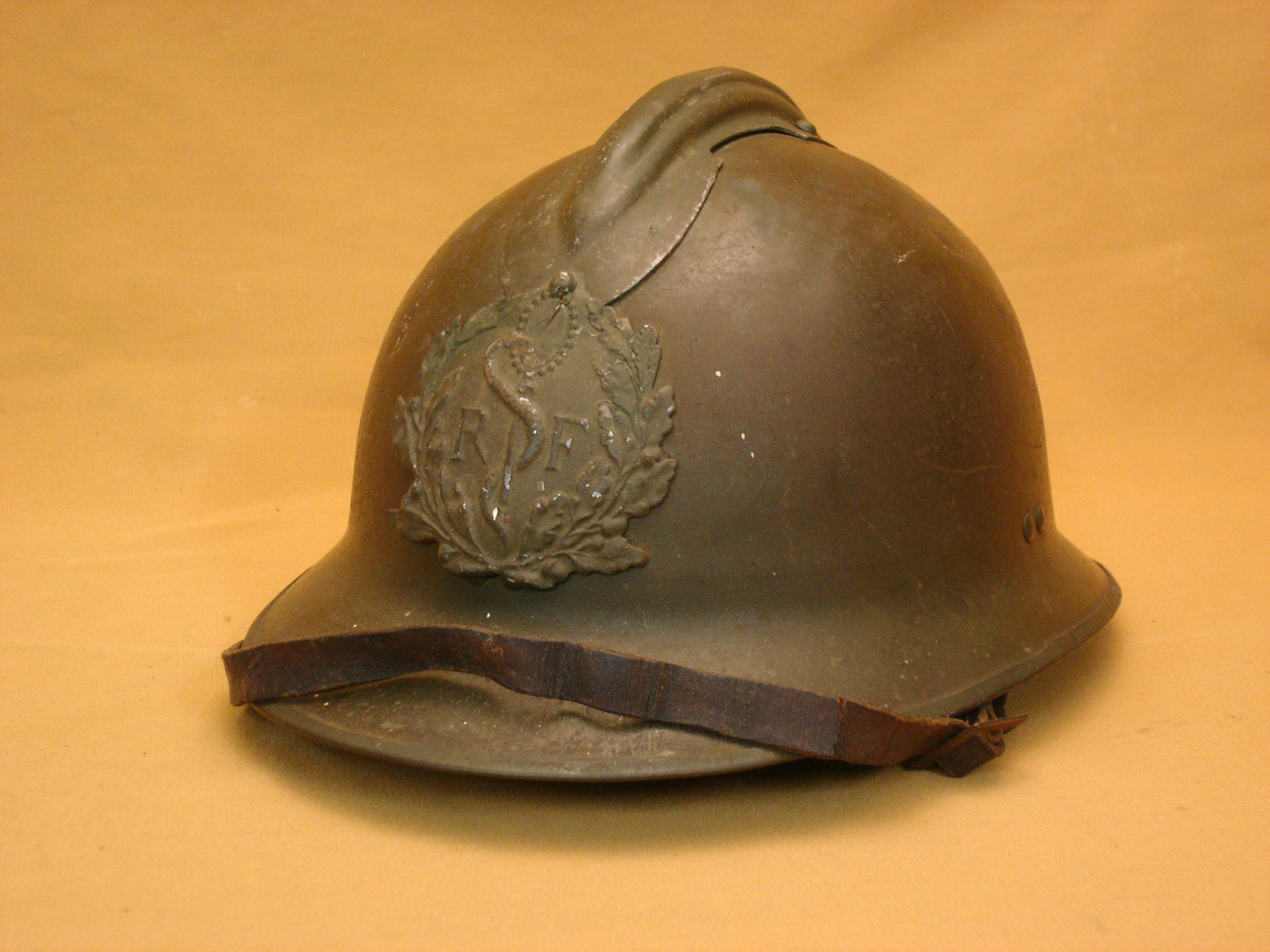 Casque Adrian 26, service de santé, attribut 1915, fabrication Carpentier, cimier en fer, complet avec sa coiffe cuir et sa jugulaire. Casque en très bon état, jamais nettoyé. Prix : 200,00 € port ...