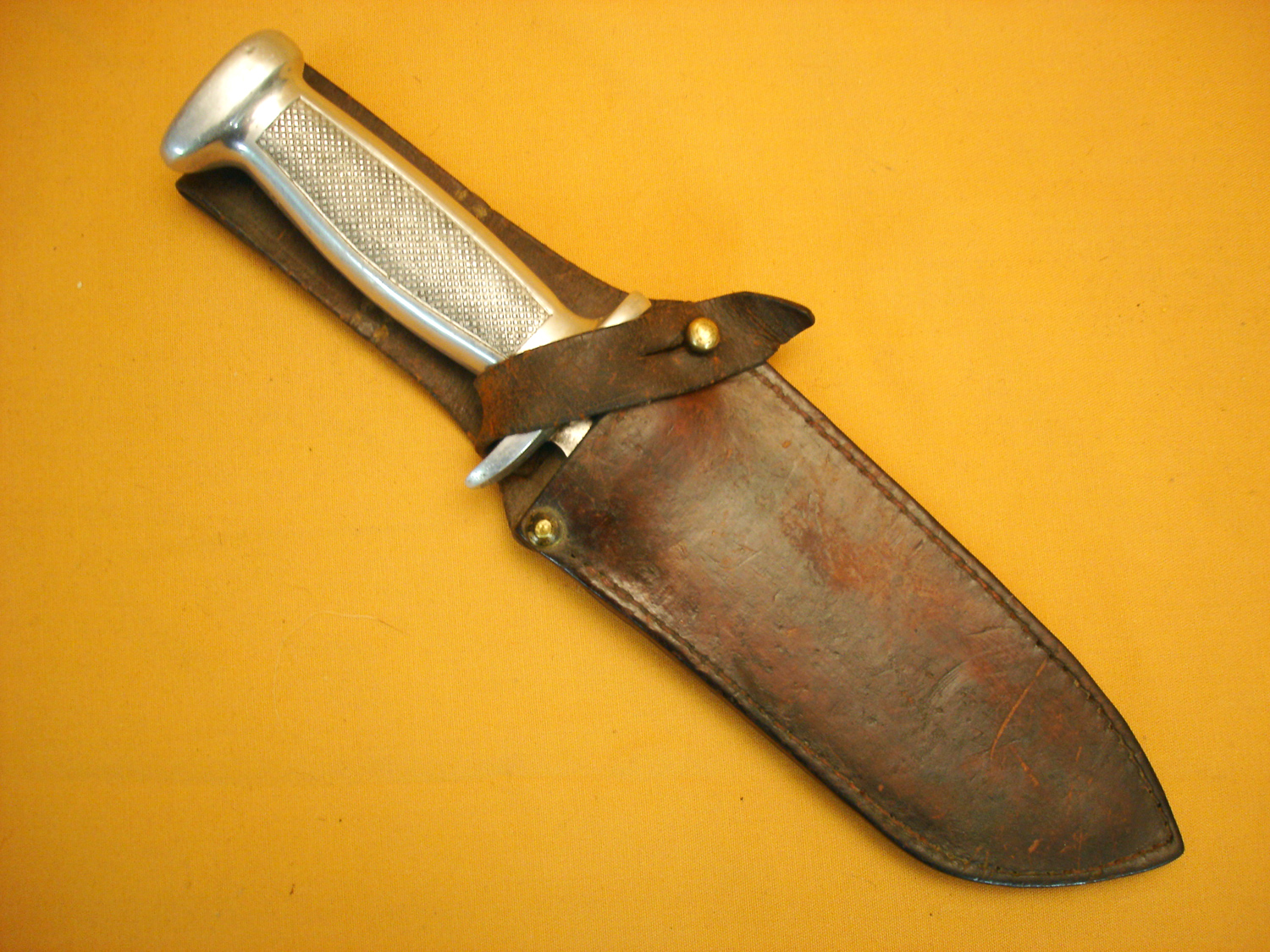 Couteau Chantier de Jeunesse, lame marquée "Sabatier Jeune", avec son fourreau cuir marron. Beau couteau CJF. Prix : 185,00 € port compris pour la France.