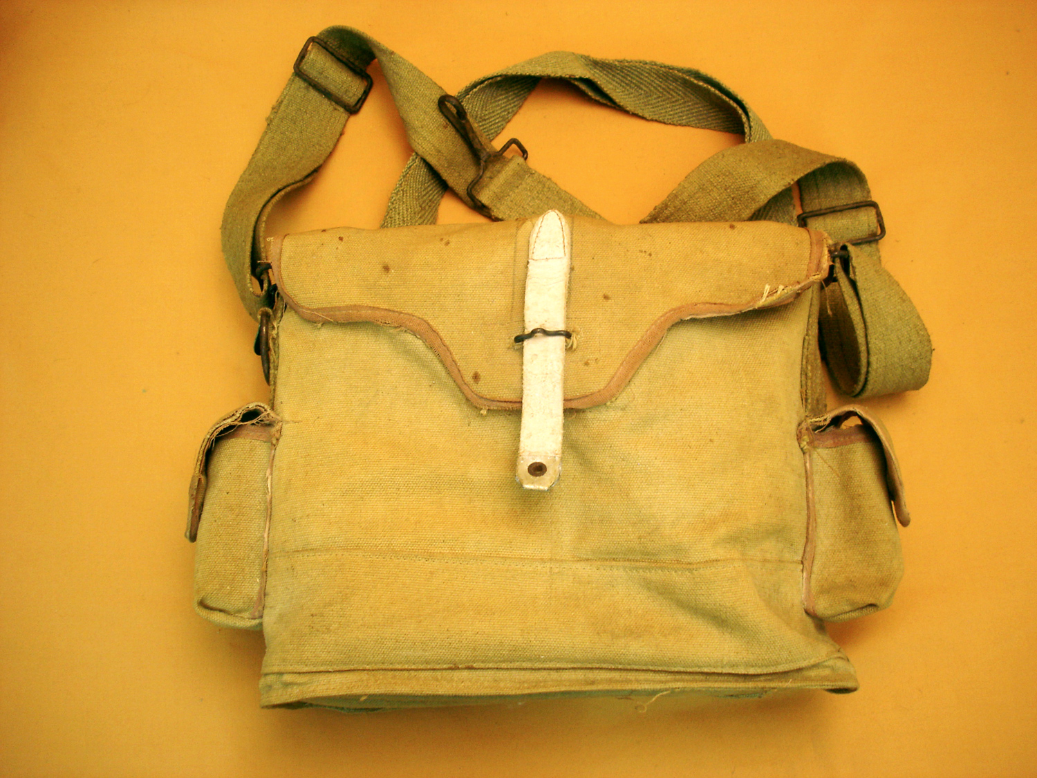 Musette Française 1940, musette mod.1892 en toile cachou, datée 1933, nominative, tampon du 13e Escadron du Train, usure d'usage. Prix : 50,00 port compris pour la France.