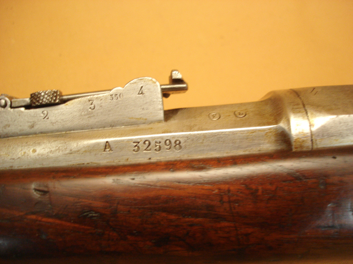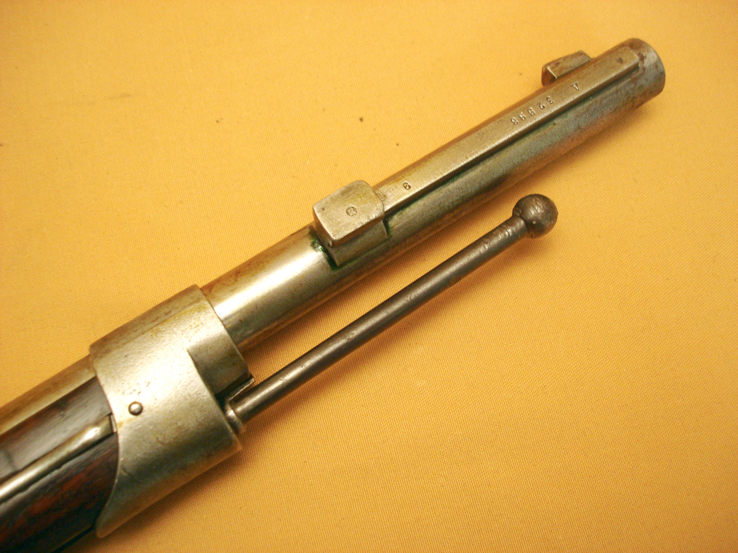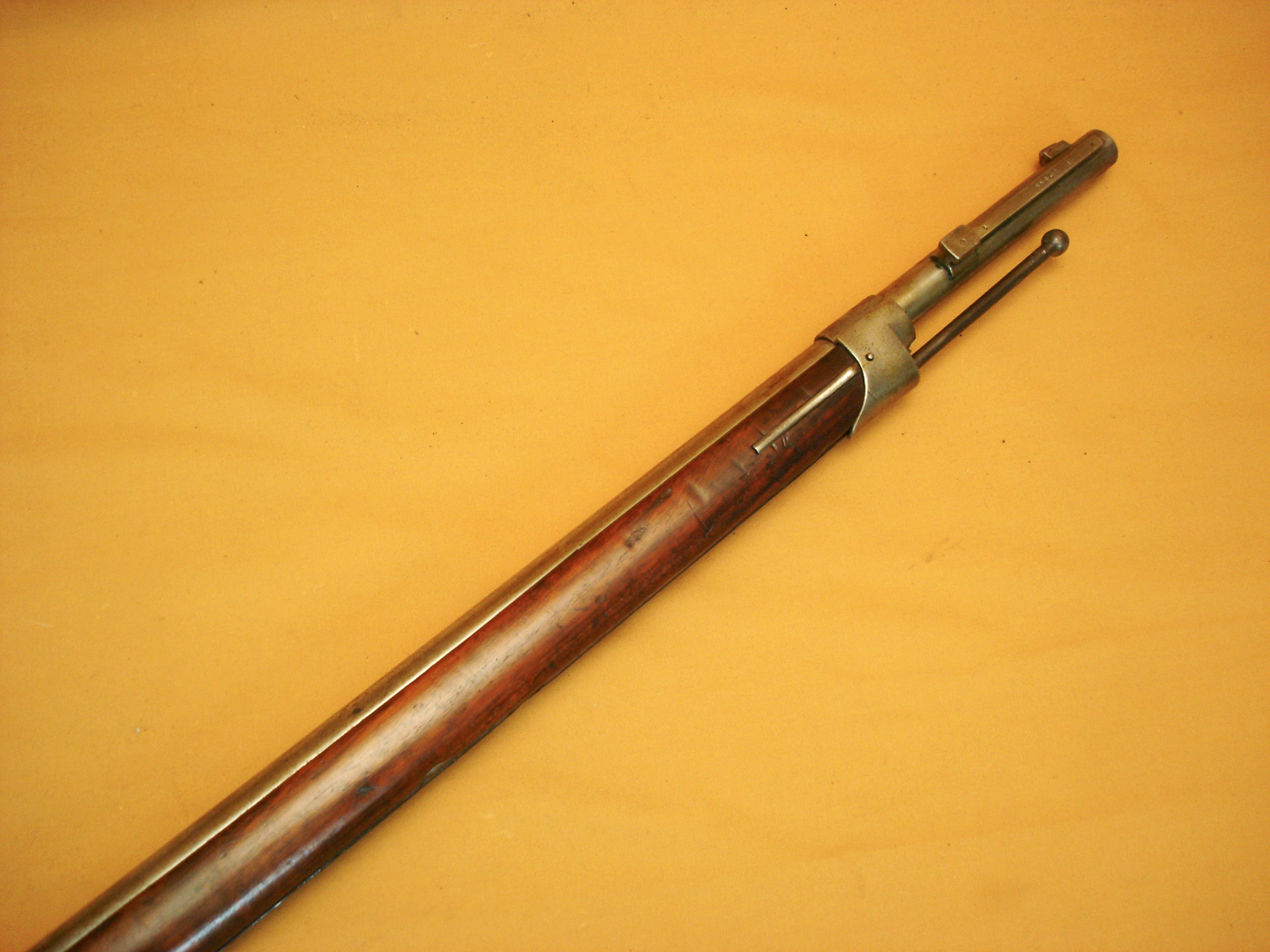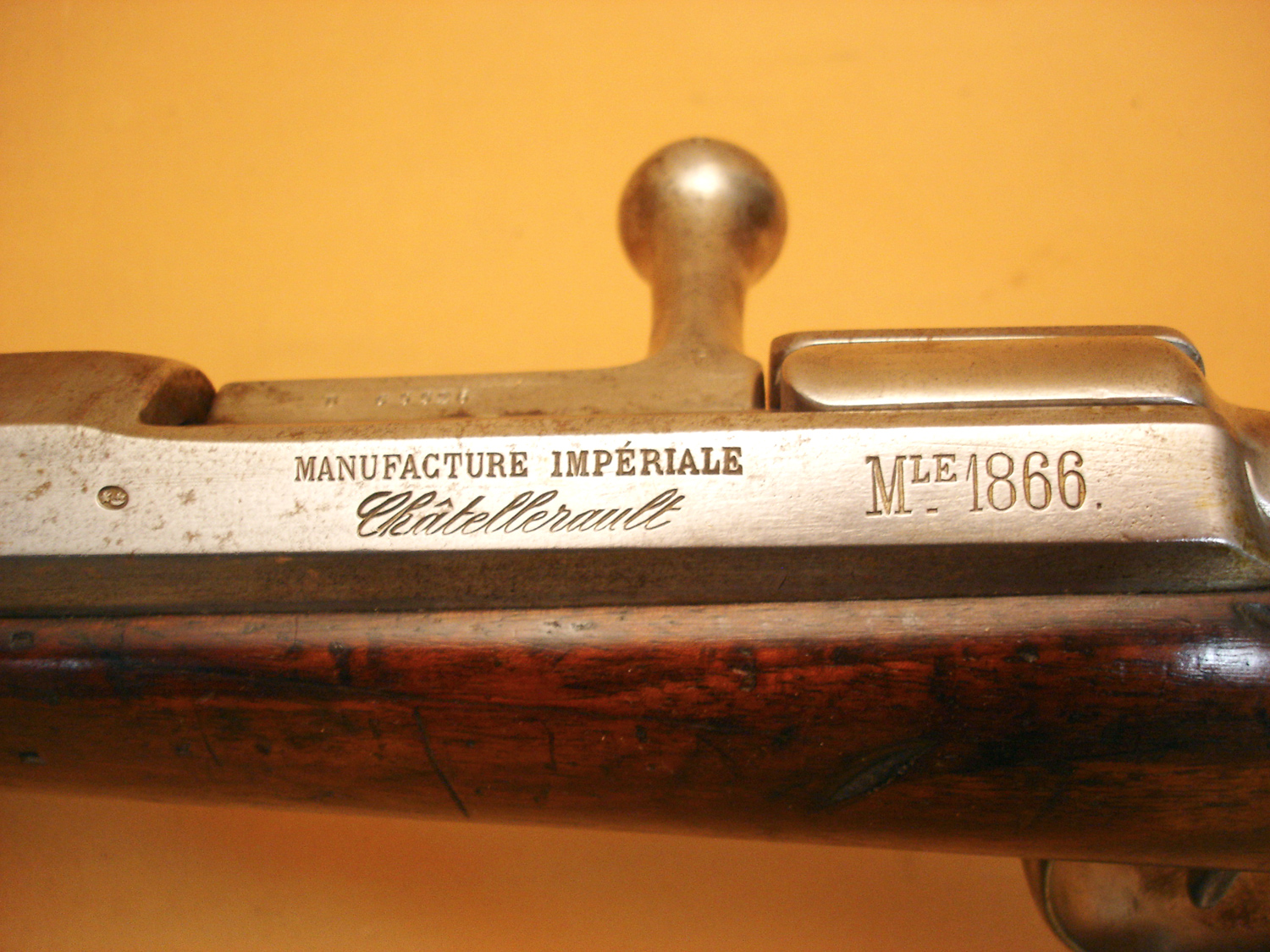 Fusil Chassepot mod.1866, Manufacture Impériale de Saint Etienne, daté 1868, beau cachet sur la crosse daté 1868, canon et mécanisme en très bon état, tout au même numéro sauf la culasse. Beau fusil Chassepot.