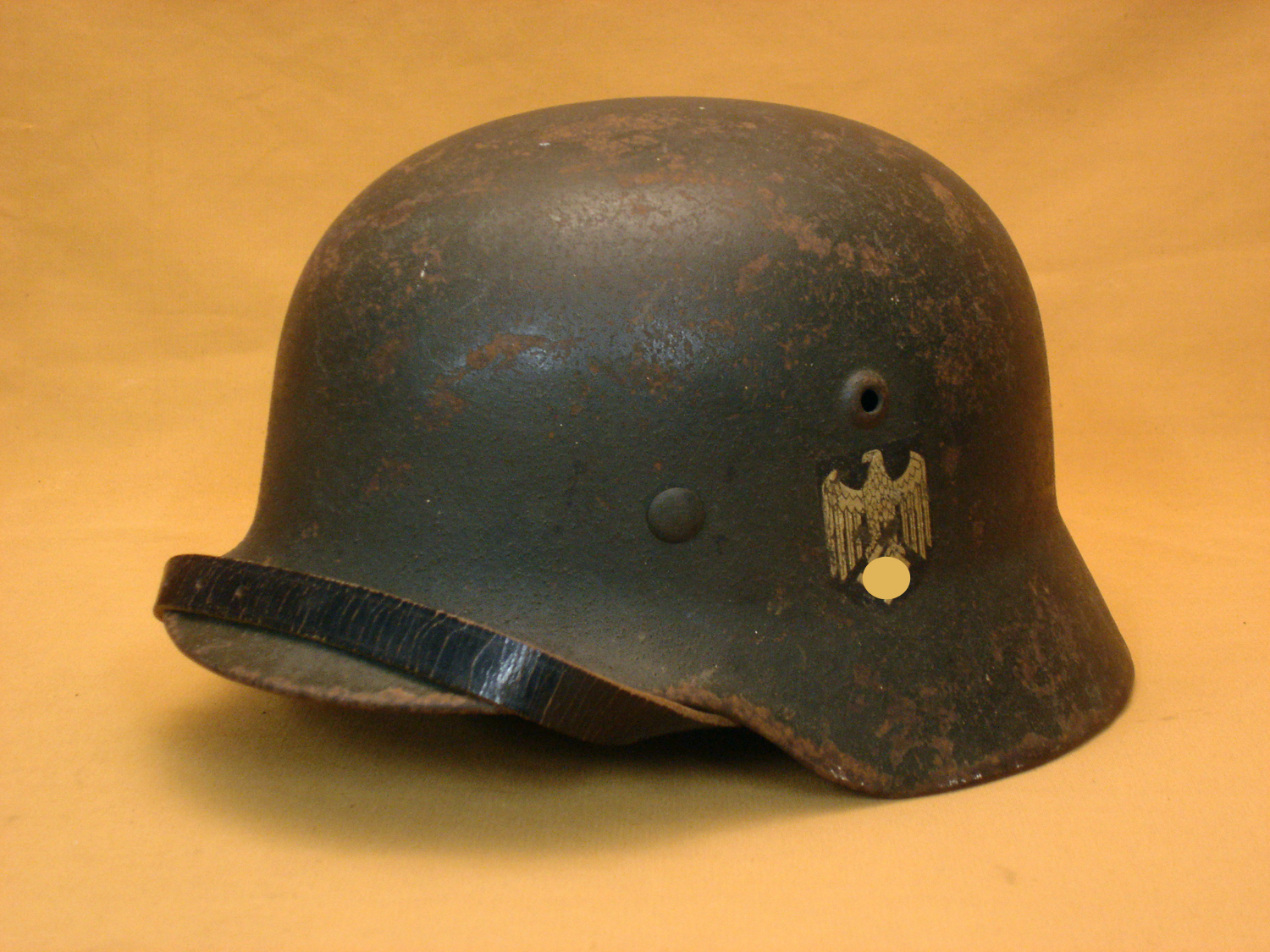 Casque Allemand Wehrmacht mod.40, bel insigne de la Heer, complet avec sa coiffe cuir d'origine et sa jugulaire, coque 64, jamais nettoyé. Prix : 750,00 € port compris pour la France.