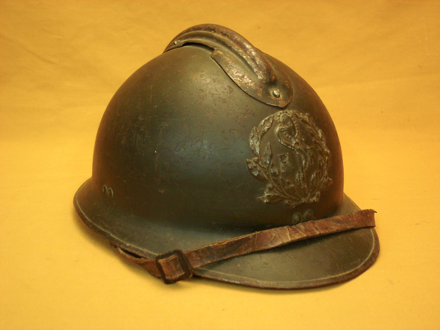 Casque Adrian 26, troupe d'Afrique, insigne mod.37, complet avec sa coiffe cuir noir et sa jugulaire, en très bon état. Prix : 240,00 € port compris pour la France.