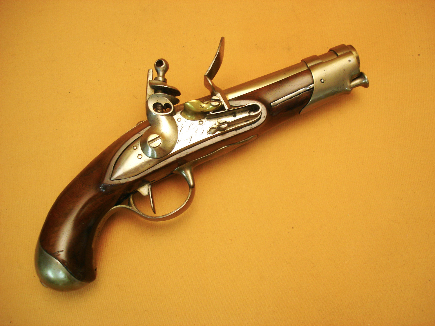 Pistolet AN XIII, daté 1813 de la Manufacture Impériale de St Etienne, bois en très bon état daté 1813, bon mécanisme, avec sa baguette. Prix : 820,00 € port compris pour la France.