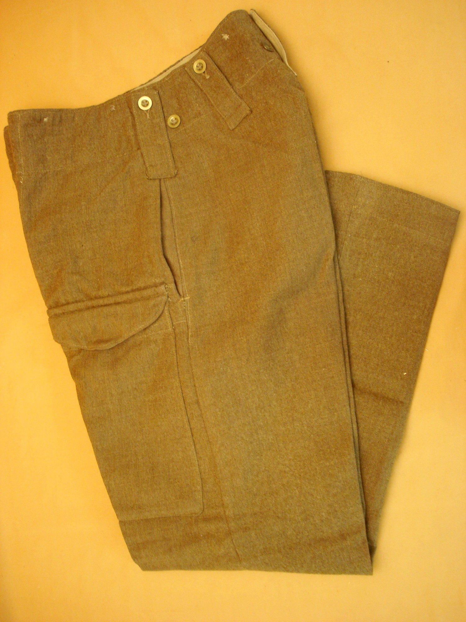 Pantalon anglais pattern 37, étiquette et marquages à l'intérieur, WD avec la flèche et au dessus la lettre Q correspondant à l'année1940, avec ses boutons métal, drap en bon état quelques petits ...