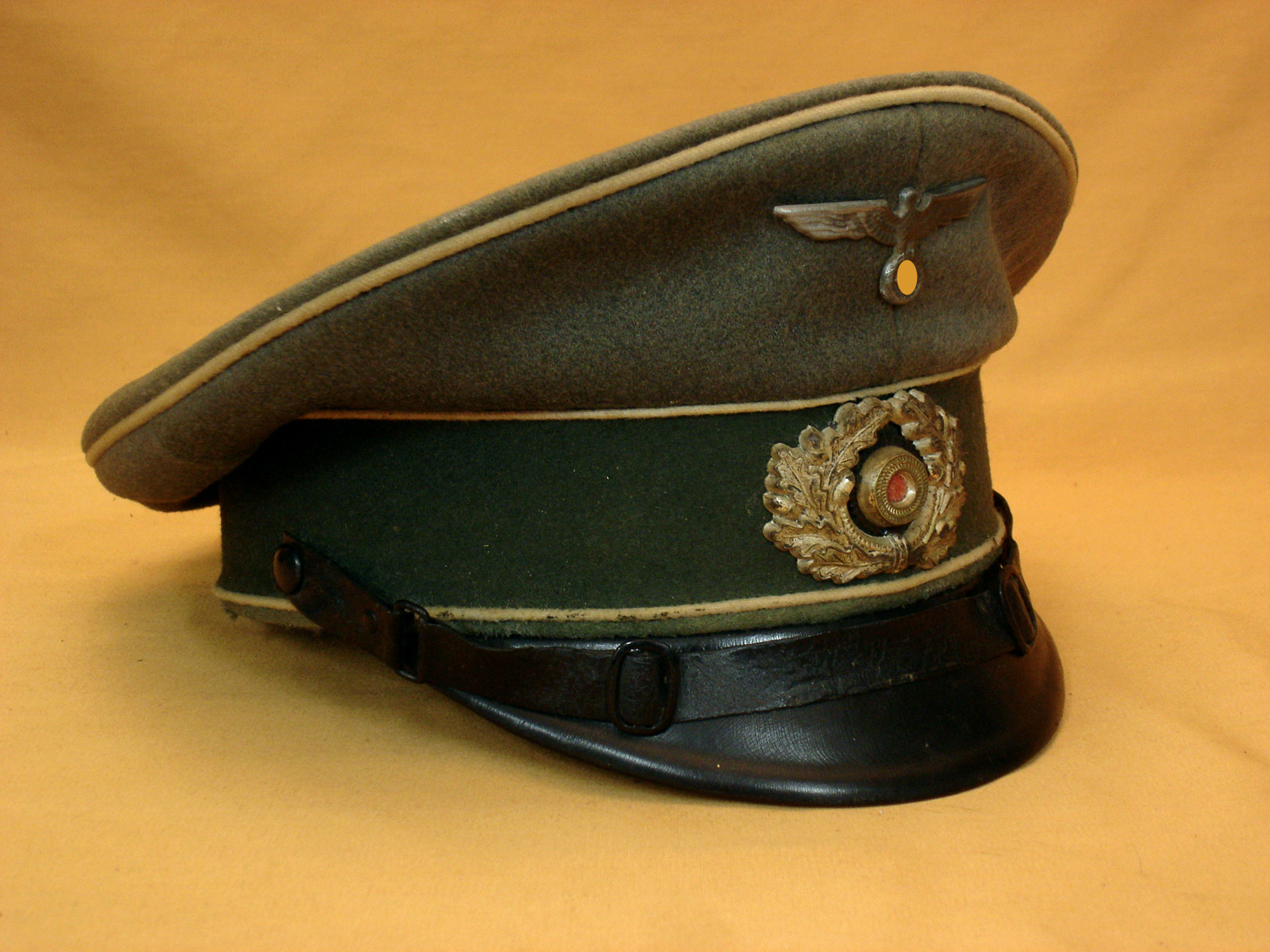 Casquette sous officier de la Heer, liseré blanc infanterie, avec ses insignes aigle et feuilles de chêne d'origine. logo du fabricant sur le mica de la coiffe. Belle schirmmütze Wehrmacht dans son ...