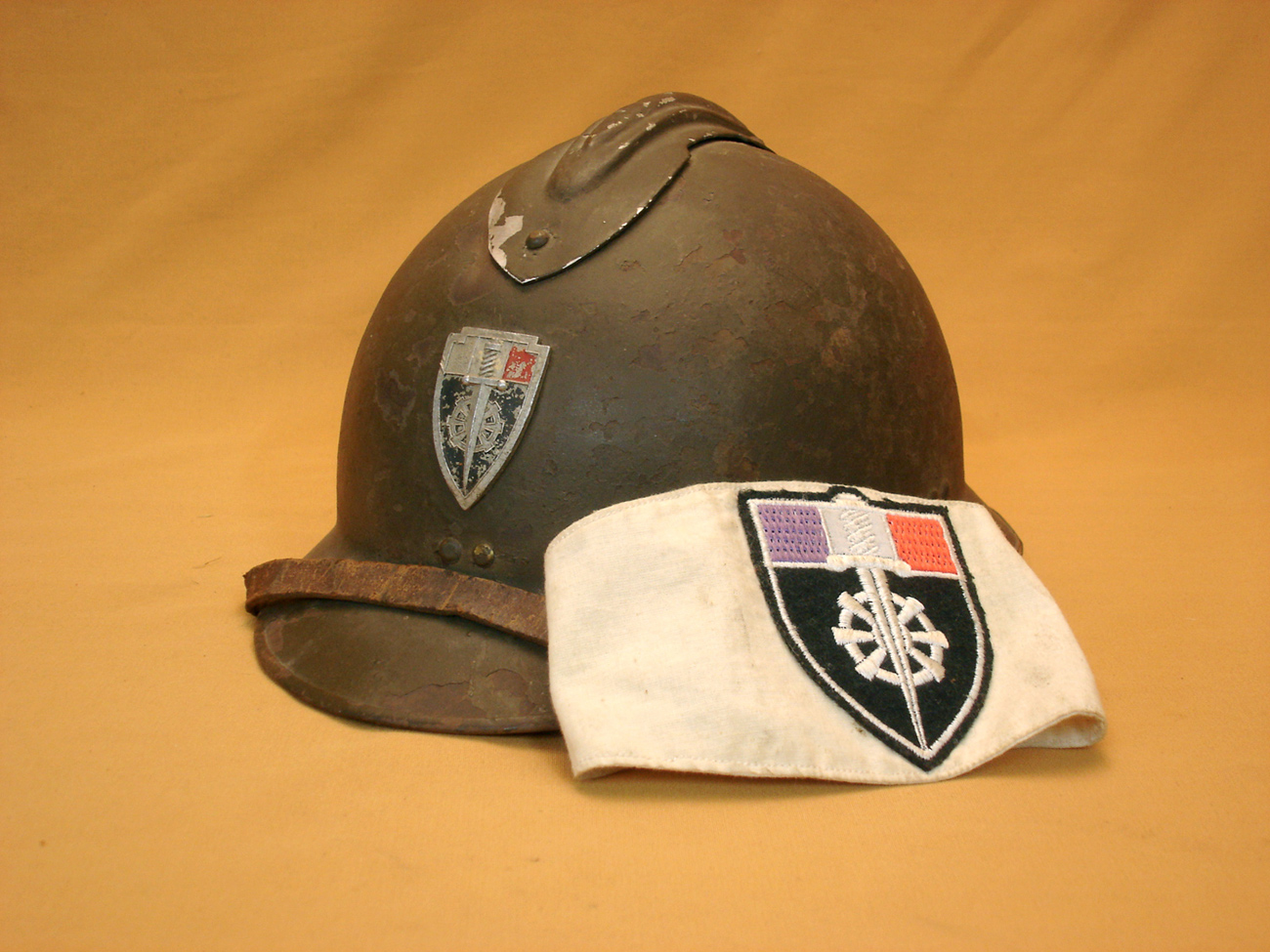 Casque Adrian 26 et brassard des gardes voies.