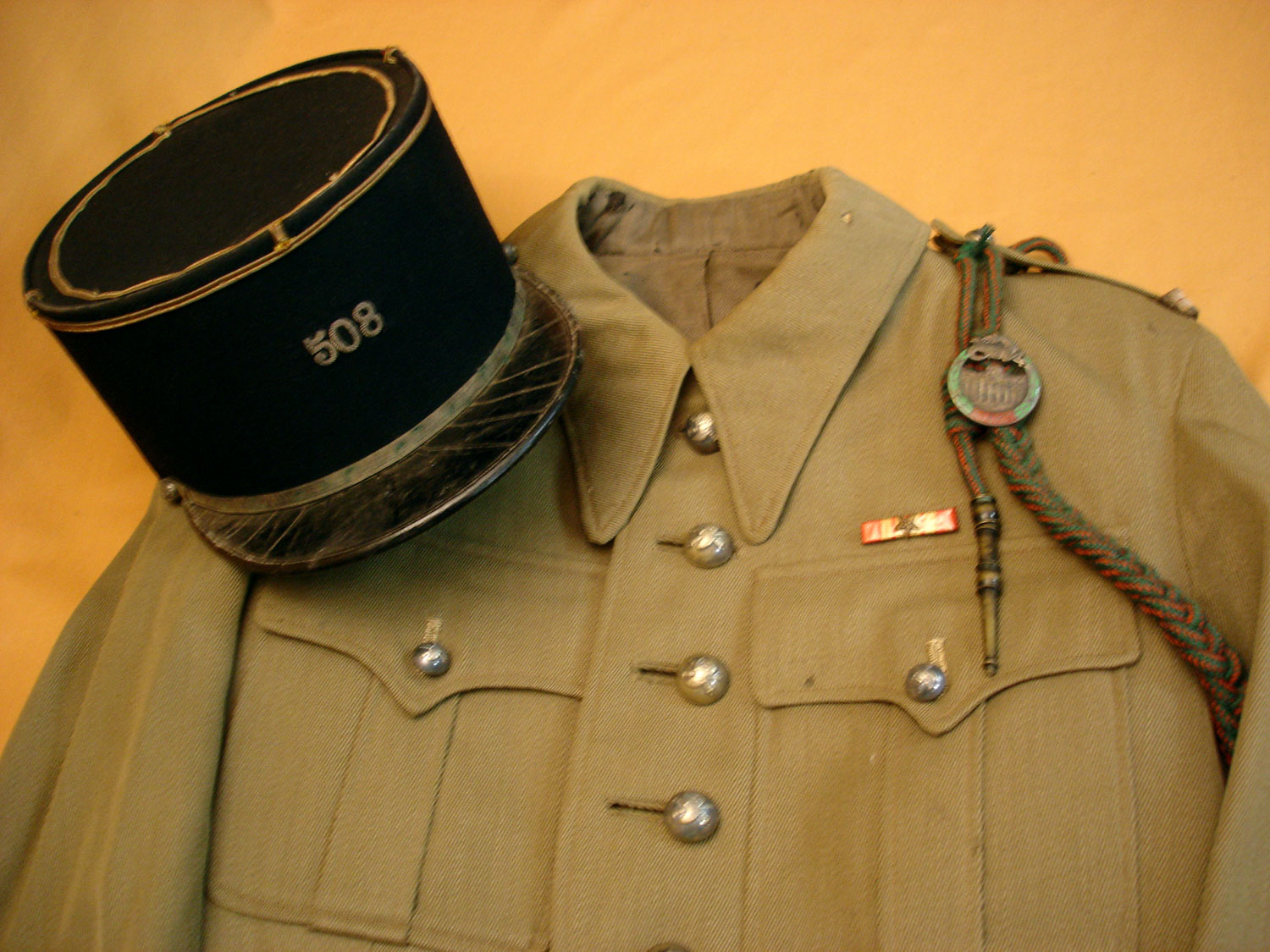 Tenue d'un Tankiste du 508e RCC, de l'adjudant Secroun Simon, radio à la 2ème Compagnie du 508e RCC sur char D1, comprenant : - la veste officier drap de couleur mastic, boutons char de combat, la ...