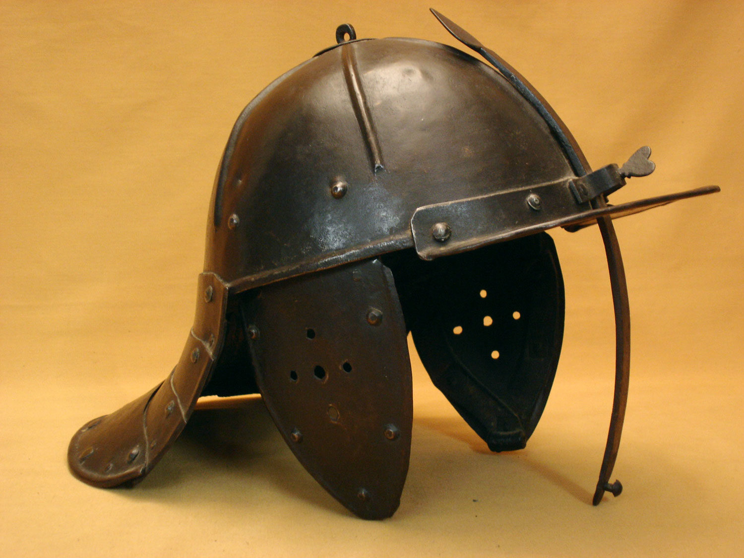 Casque Capeline XVIe siècle, complète, avec ses protèges joues d'origine, le nasal avec poinçon, très belle patine. Casque authentique dans son "jus". Prix : 2500,00 € port compris pour la France.