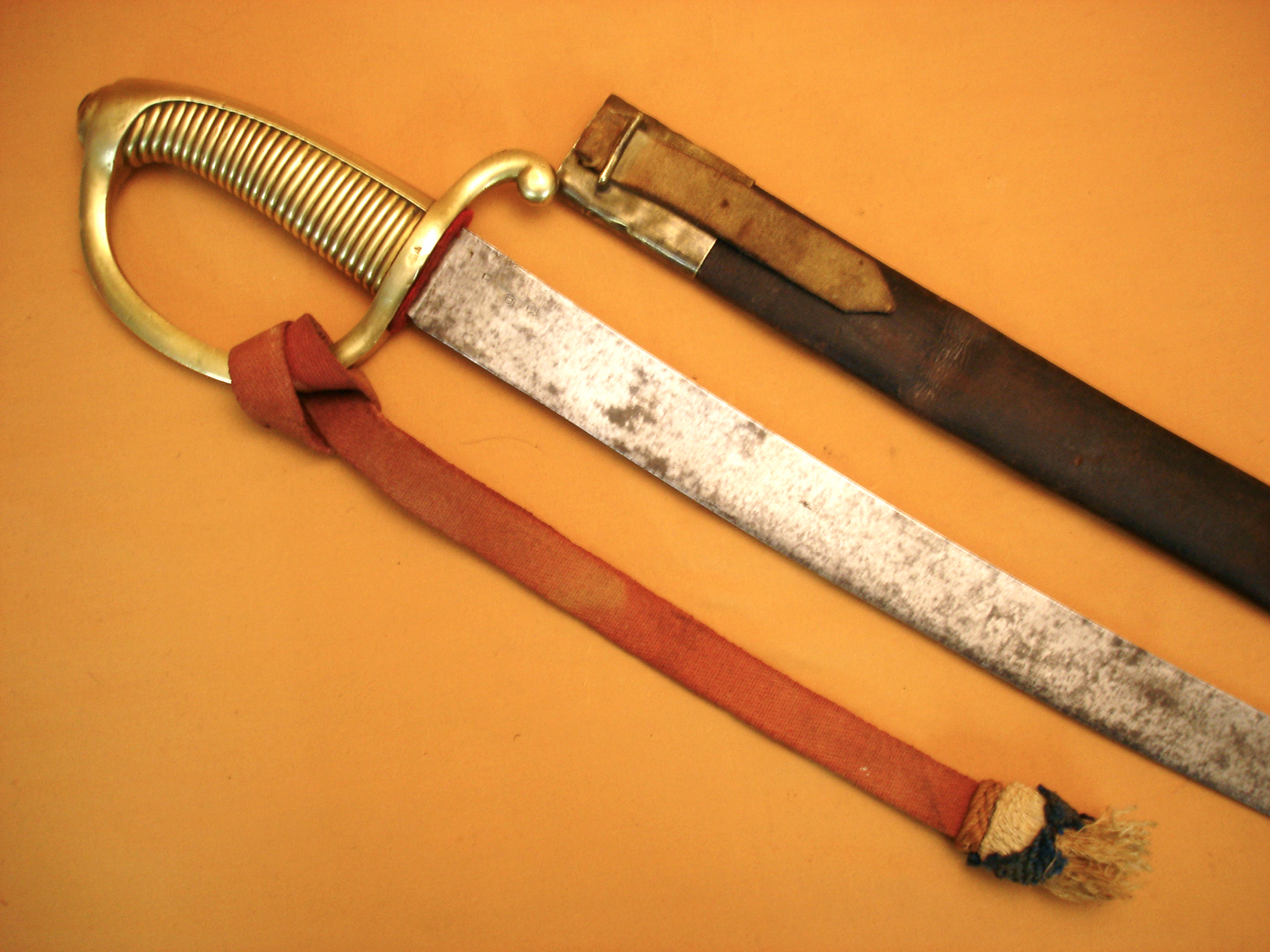 Sabre Briquet daté 1812, mod. An XI, lame marquée "Manufacture Impériale de Klingenthal Juin 1812", garde poinçonnée de Versailles, avec son fourreau cuir et sa rare dragonne d'époque, belle ...