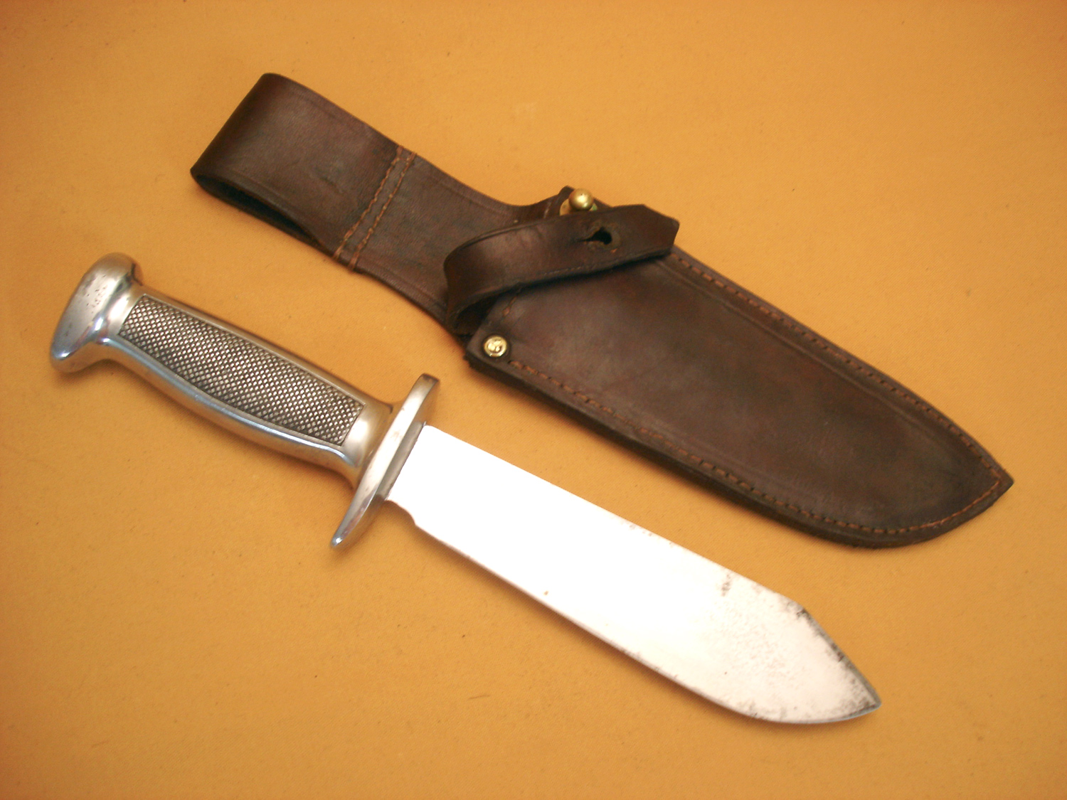 Couteau Chantier de Jeunesse, belle lame marquée "Sabatier jeune", avec son fourreau cuir marron. Très beau couteau CJF. Prix : 200,00 € port compris pour la France.