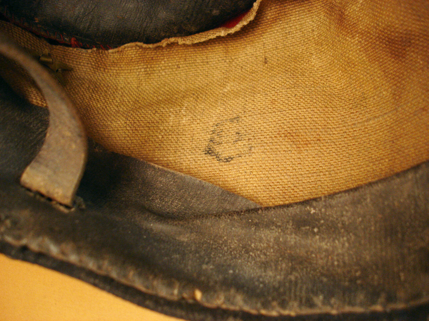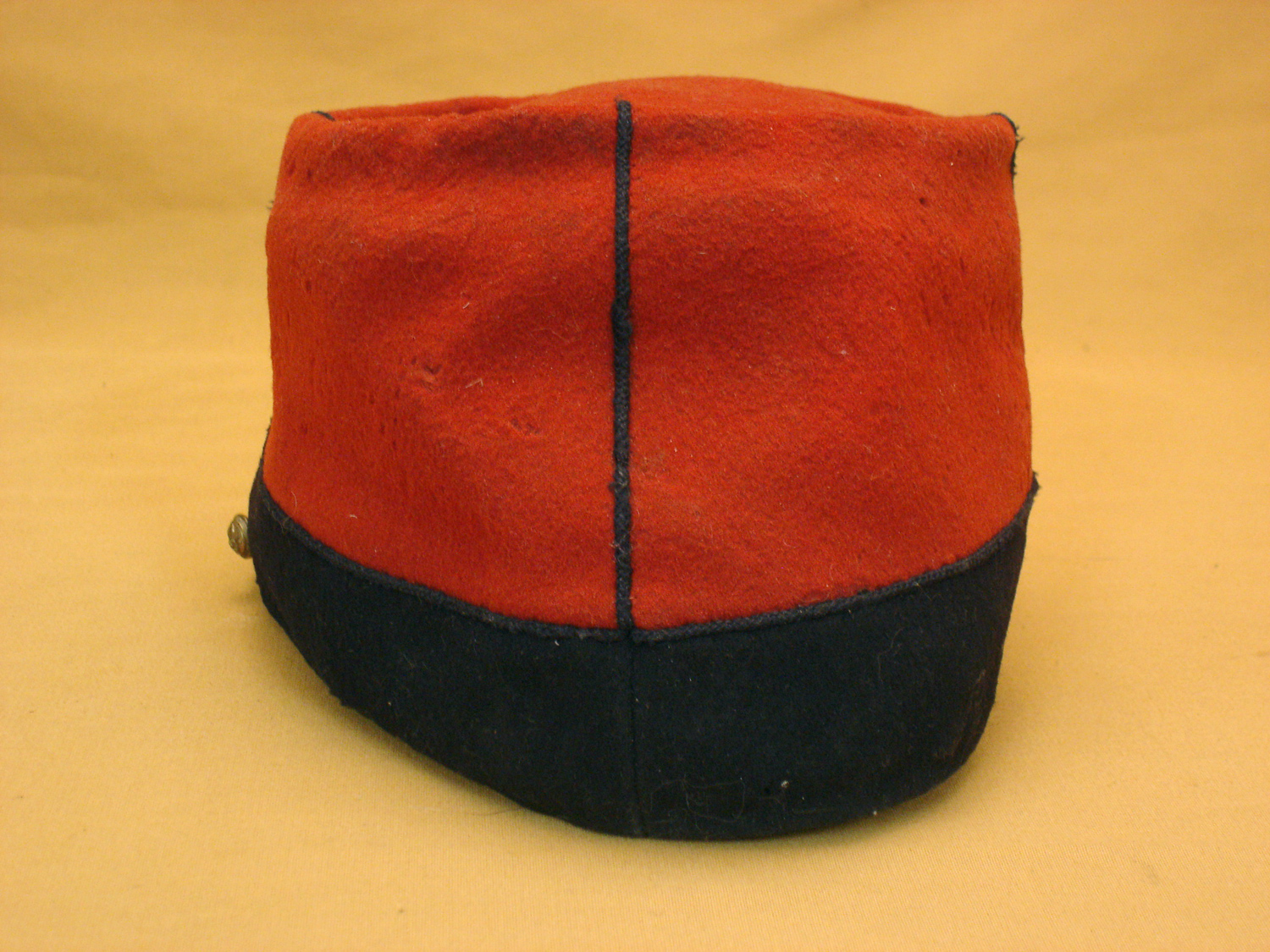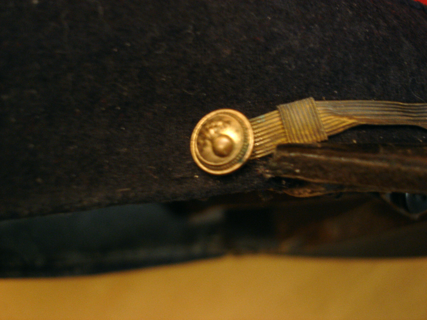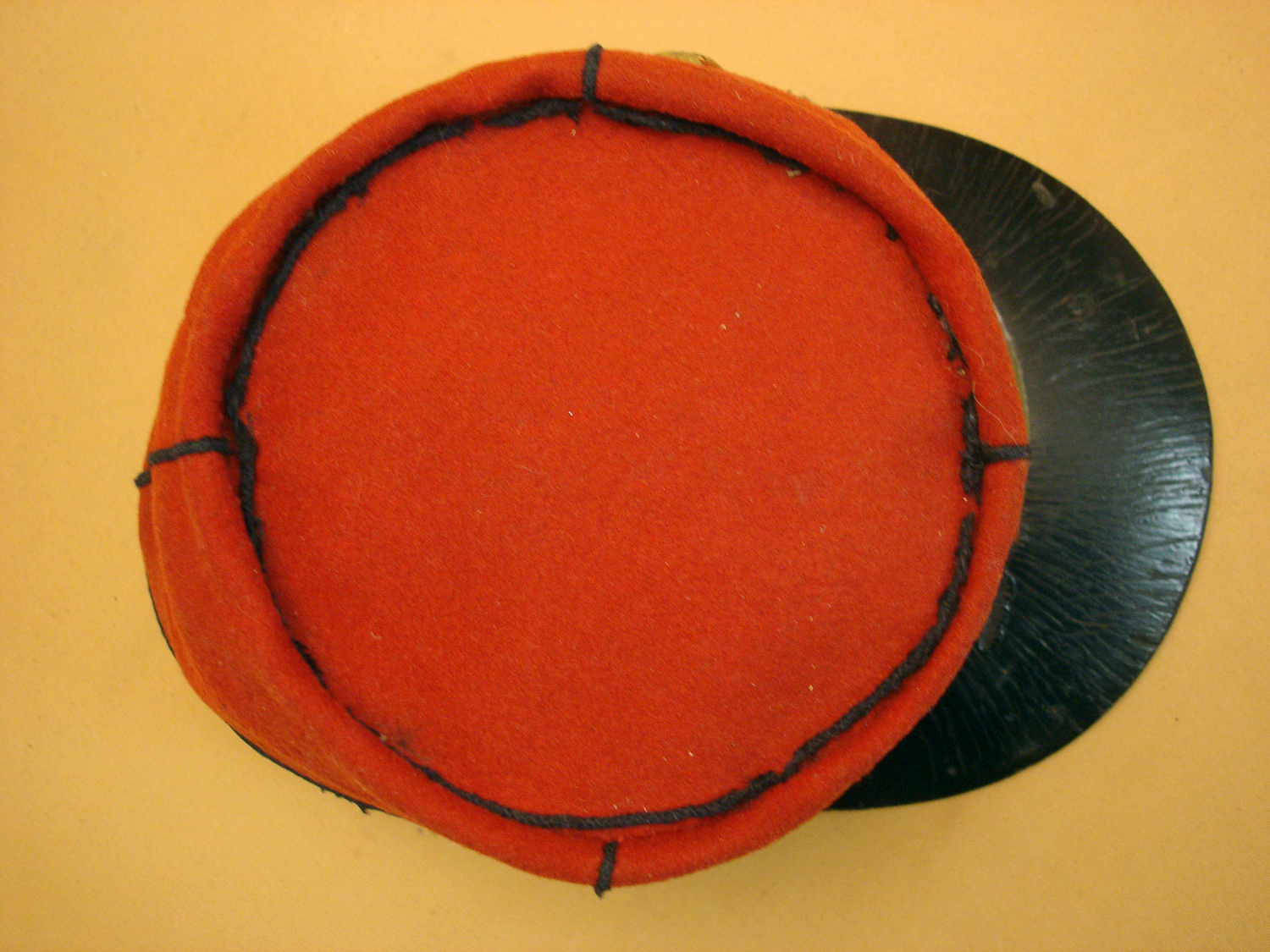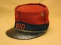 Képi 1884 troupe du 100e RI (Tulle), jugulaire de sous officier, beaux marquages, avec sa rare jugulaire cuir de coiffe souvent manquante, usure d'usage.