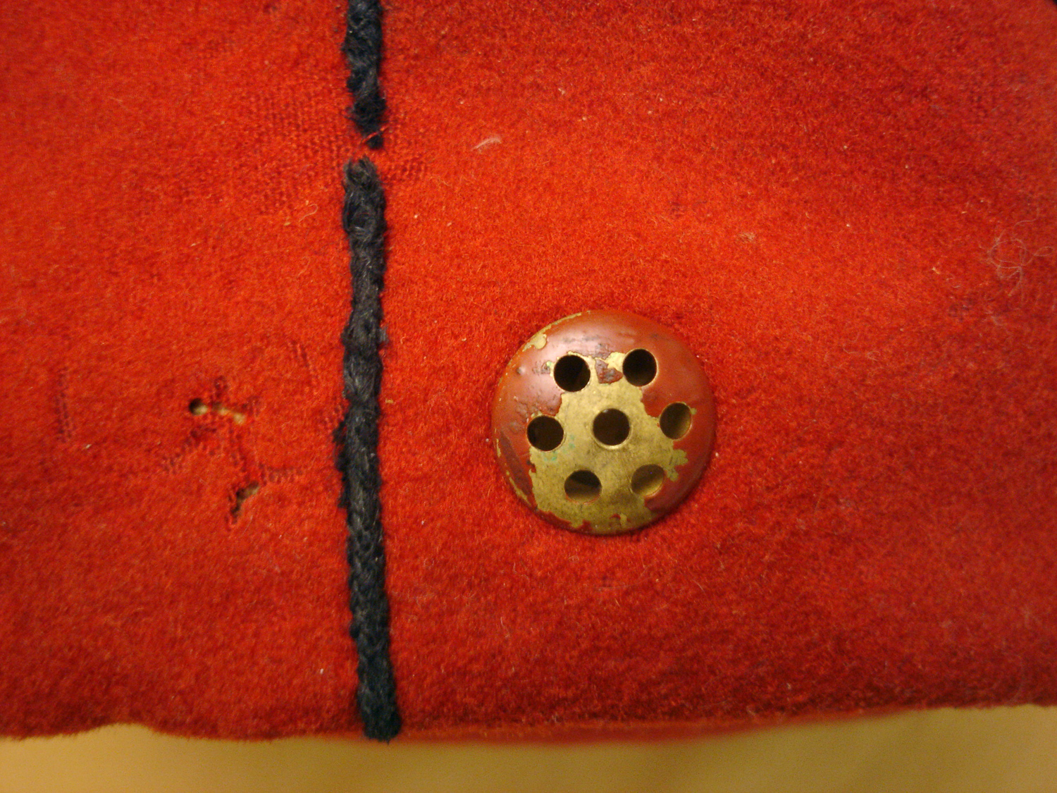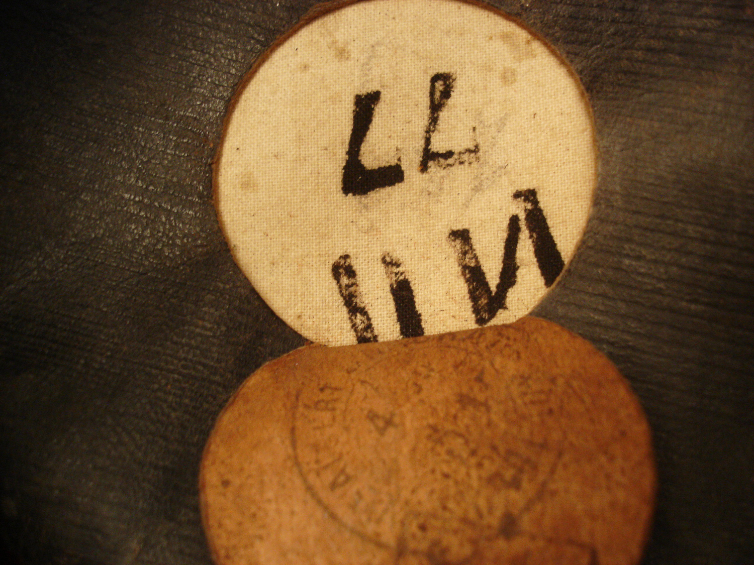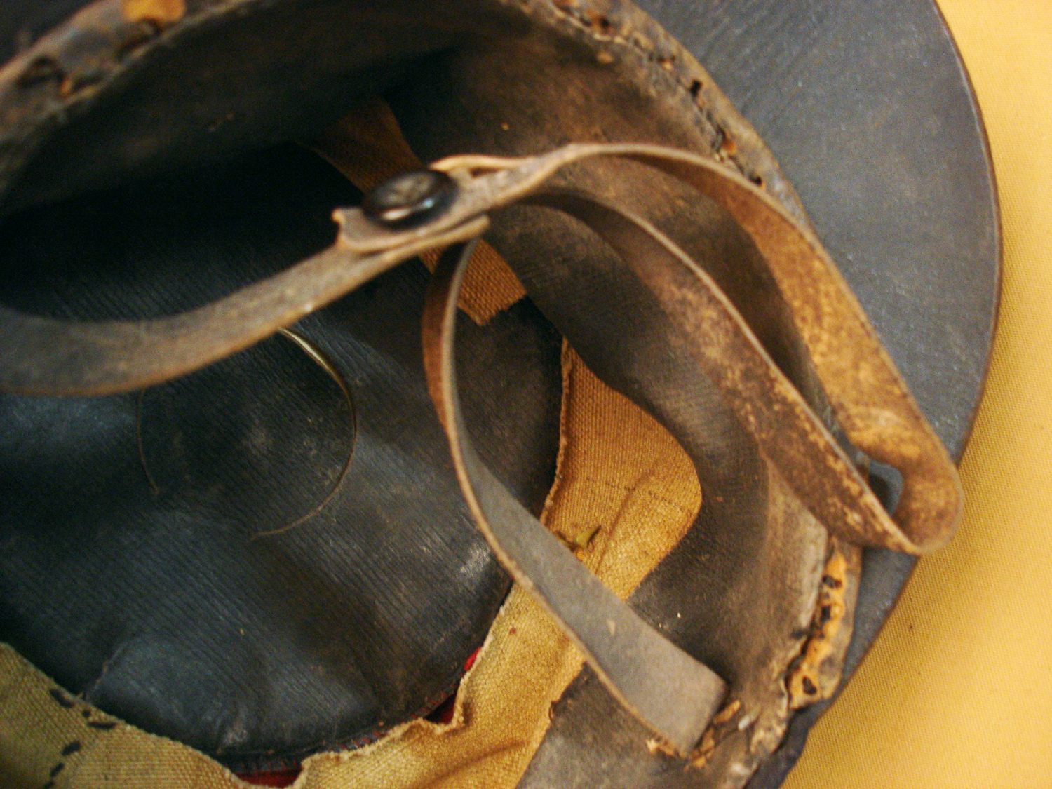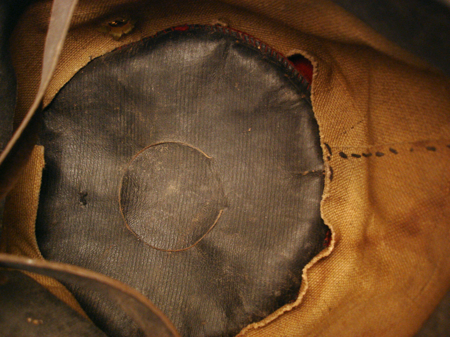 Képi 1884 troupe du 100e RI (Tulle), jugulaire de sous officier, beaux marquages, avec sa rare jugulaire cuir de coiffe souvent manquante, usure d'usage.