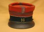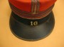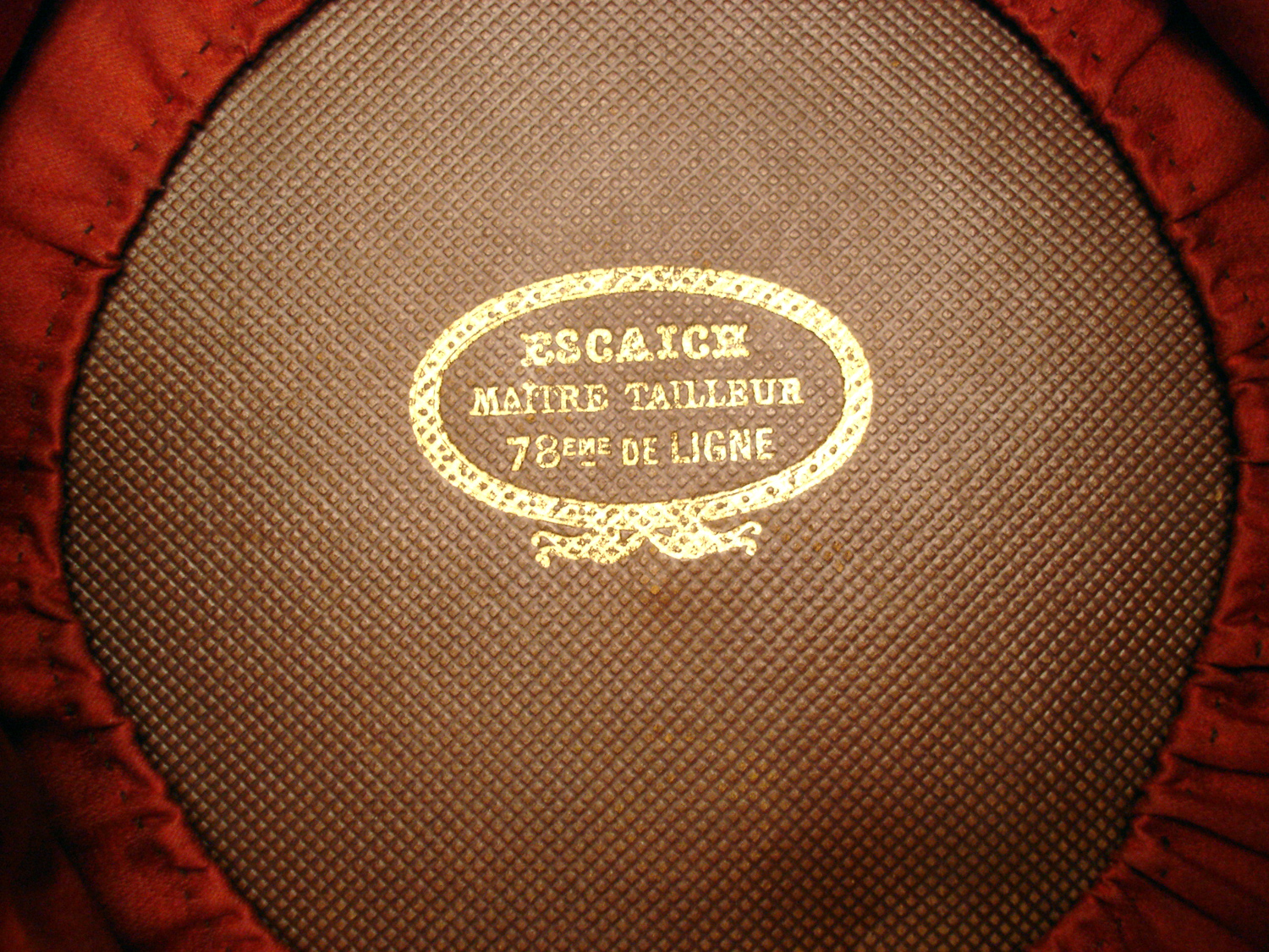 Képi de commandant d'infanterie 1880 du 16e de Clermont-Ferrand, intérieur de soie rouge, logo du fabricant "Escaich, Maître tailleur du 78e de Ligne" (Limoges), bandeau de sudation en cuir marron avec liseré doré, très belle forme, usure d'usage.